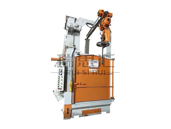 工件由吊钩载着进入抛丸室,利用高效抛丸器将弹丸高速抛射到被清理工件表面上,对工件进行清理,对于结构比较复杂的工件,可通过喷丸清除抛丸死角,来对工件进行彻底清理,达到除锈、强化的目的,适合于各种机械行业的中小型铸件、结构件的表面清理或强化处理。