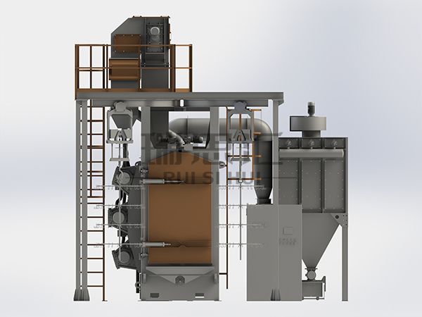 工件由吊钩载着进入抛丸室,利用高效抛丸器将弹丸高速抛射到被清理工件表面上,对工件进行清理,对于结构比较复杂的工件,可通过喷丸清除抛丸死角,来对工件进行彻底清理,达到除锈、强化的目的,适合于各种机械行业的中小型铸件、结构件的表面清理或强化处理。