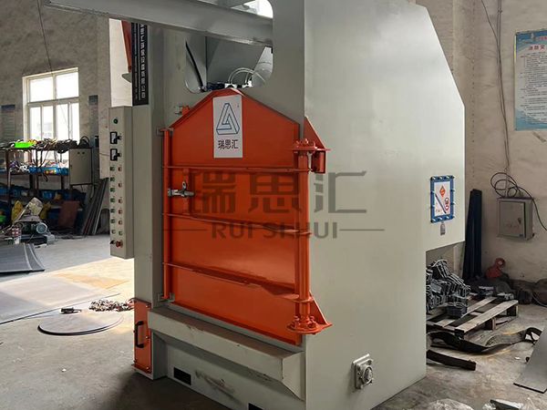 工件由吊钩载着进入抛丸室,利用高效抛丸器将弹丸高速抛射到被清理工件表面上,对工件进行清理,对于结构比较复杂的工件,可通过喷丸清除抛丸死角,来对工件进行彻底清理,达到除锈、强化的目的,适合于各种机械行业的中小型铸件、结构件的表面清理或强化处理。