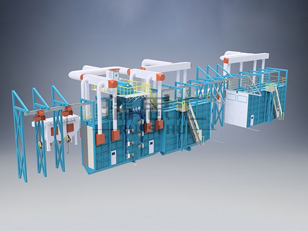 悬链式抛丸清理机工作原理是工件随吊链可连续运行、步进运行或采用先进的积放推式悬链输送工件,使工件在装卸料以及抛丸区分别处于停止状态,实现定点装卸和定点抛丸工序,根据工件不同可单点吊重50~2000kg,且生产率高,运行可靠,对各类易吊挂类零件的大批量清理,非常适用。